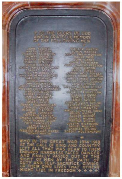All Saints Primary School were contacted this Spring by a lady called Margaret who had ended up with the war memorials from the old All Saints church. She had been doing a local history research project and no longer needed them. Bolton museum didn’t want them either and so suggested that she contacted us at the school. We were delighted and said we’d be honoured to have them. They are now displayed in our entrance hall and Margaret also gave us a file of information on the people listed. Having this important piece of our local history, and another link to our church, makes us feel very blessed. If any of the congregation recognise any of the names and would like to come to the school and have a look at the memorials and/ or the information file then you’d be very welcome. Just contact Katie Hague at the school on 01204 333083.